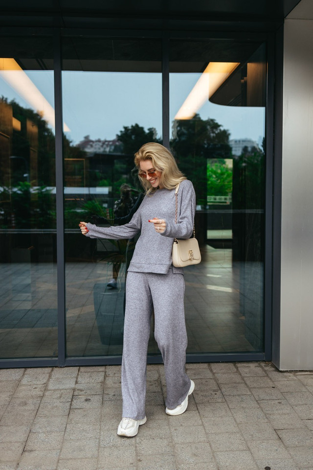 Повсякденний вільний костюм ангоровий з широкими штанами 42-48 розмір різні кольори