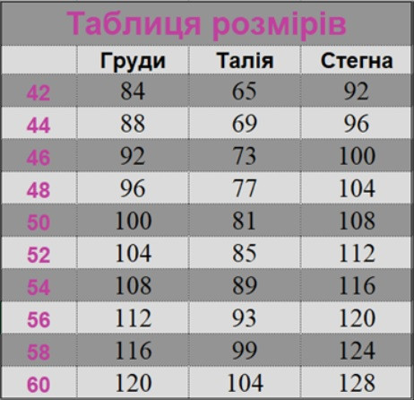 | Розмір жіночого одягу (UA) | 42 |